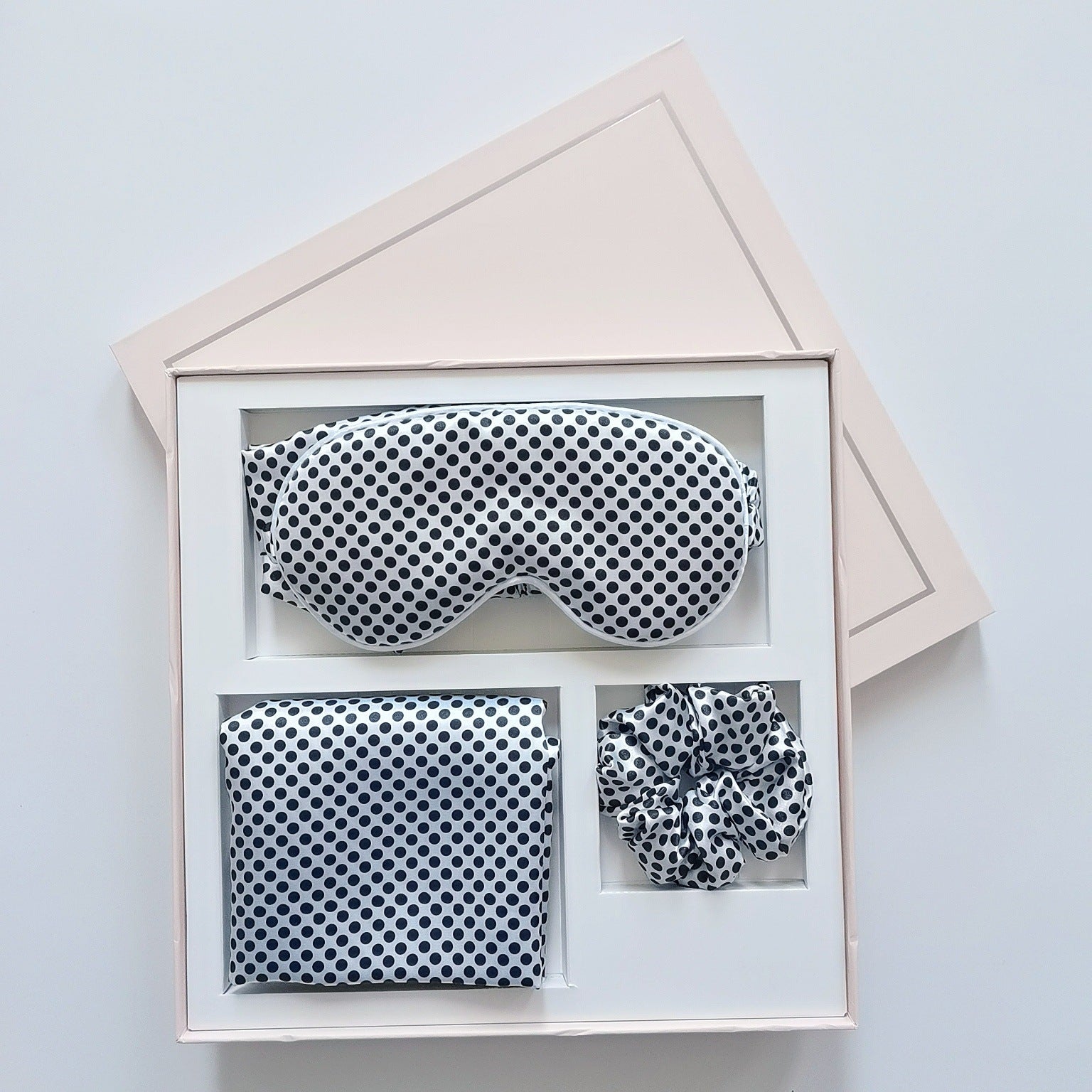 Design Specifications: Leopard print four-piece set (eye mask hair band pillowcase hair ring) in bag package, small polka dots (eye mask hair band pillowcase hair ring) in bag package