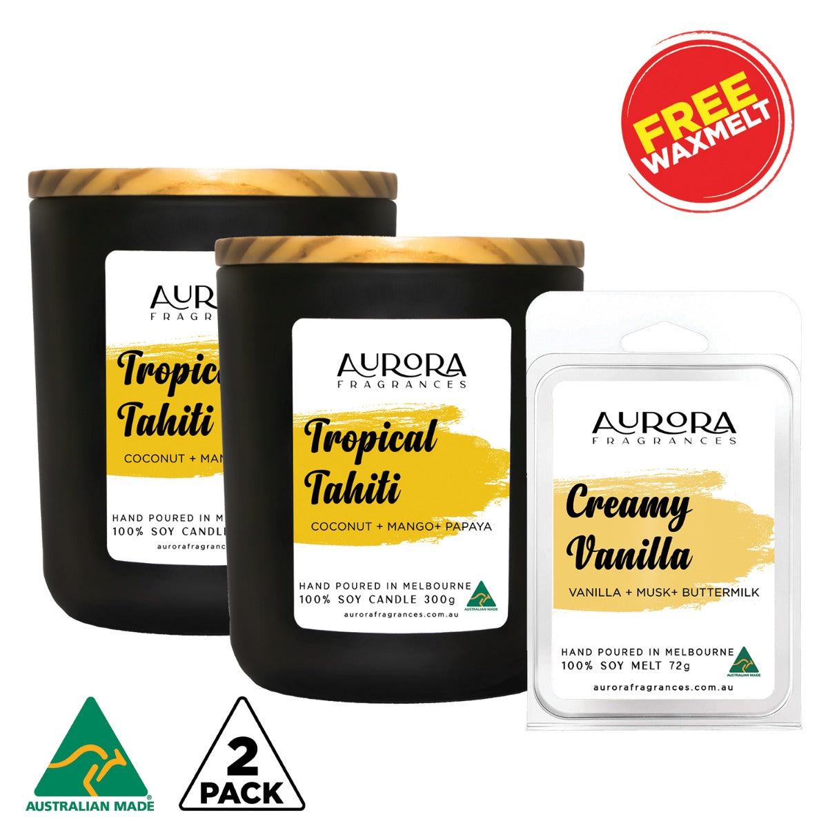 Aurora Tropical Tahiti Scented Soy Candle Australian Made 300g 2 Pack