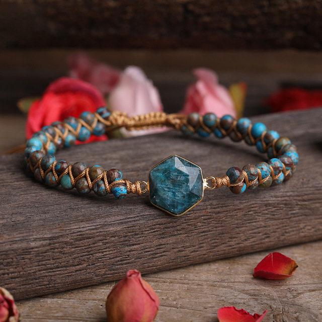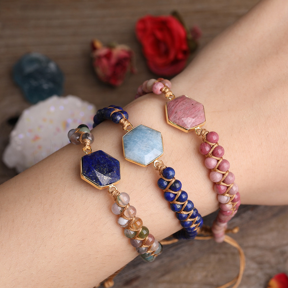 Hexagonal Polygonal Ocean Stone Rhodolite Woven Adjustable Bracelet
