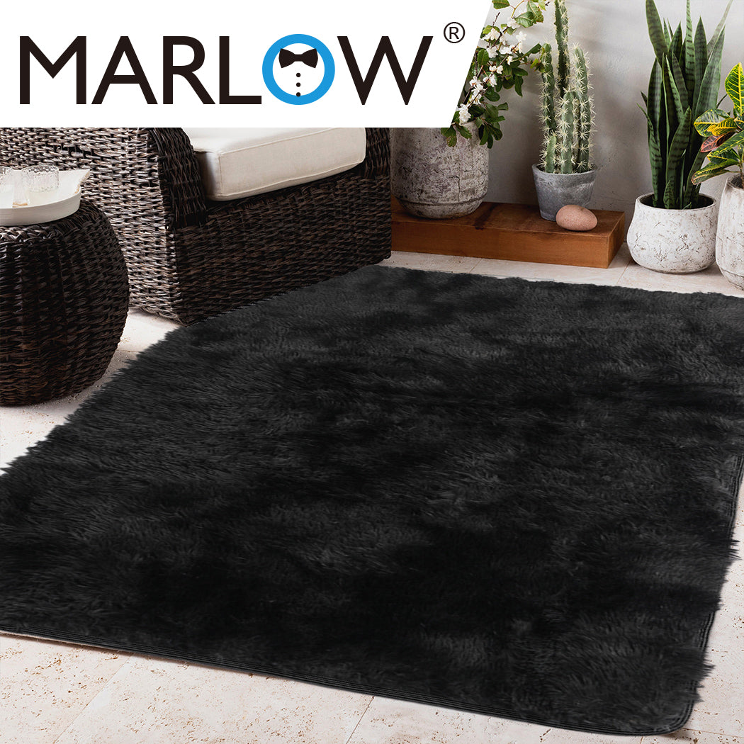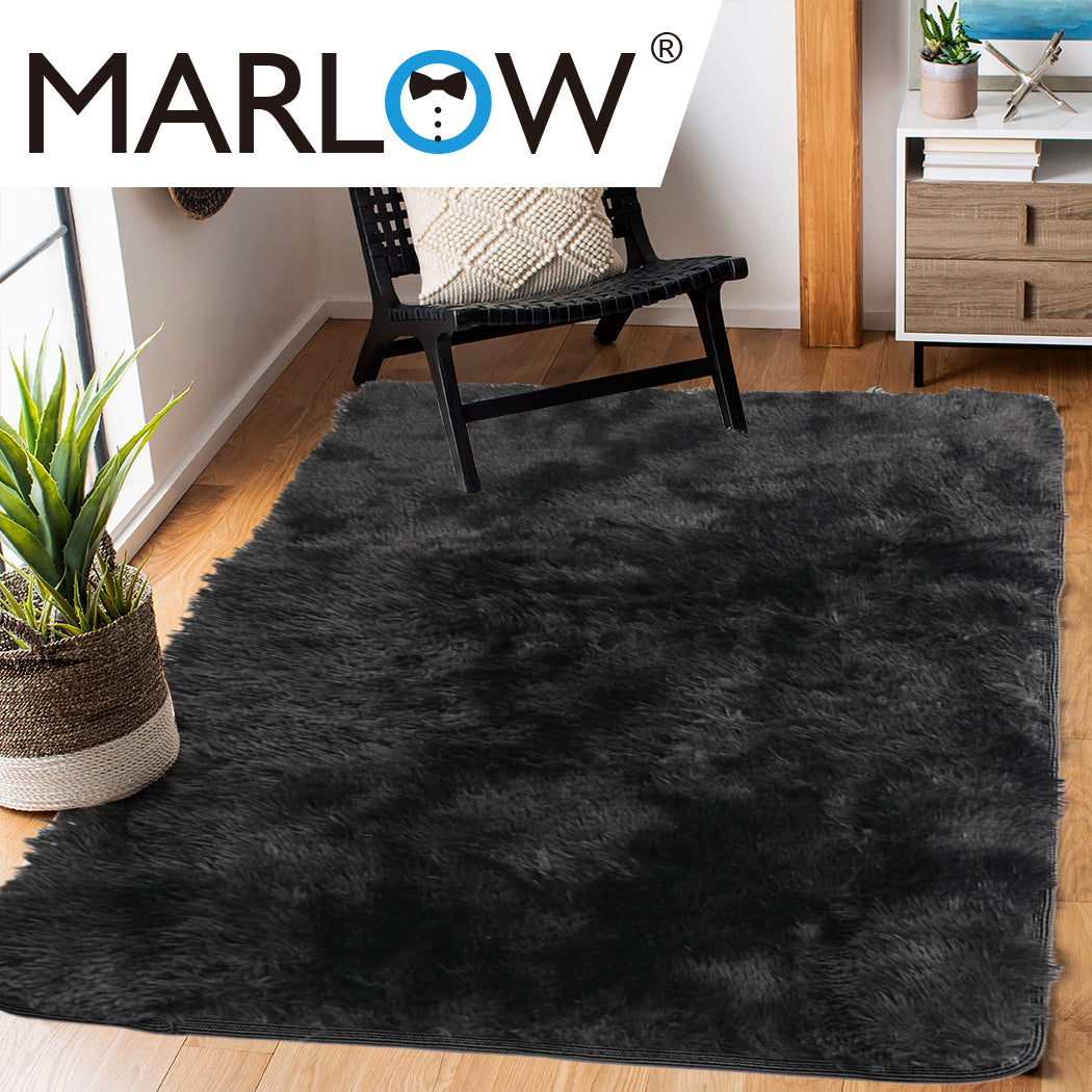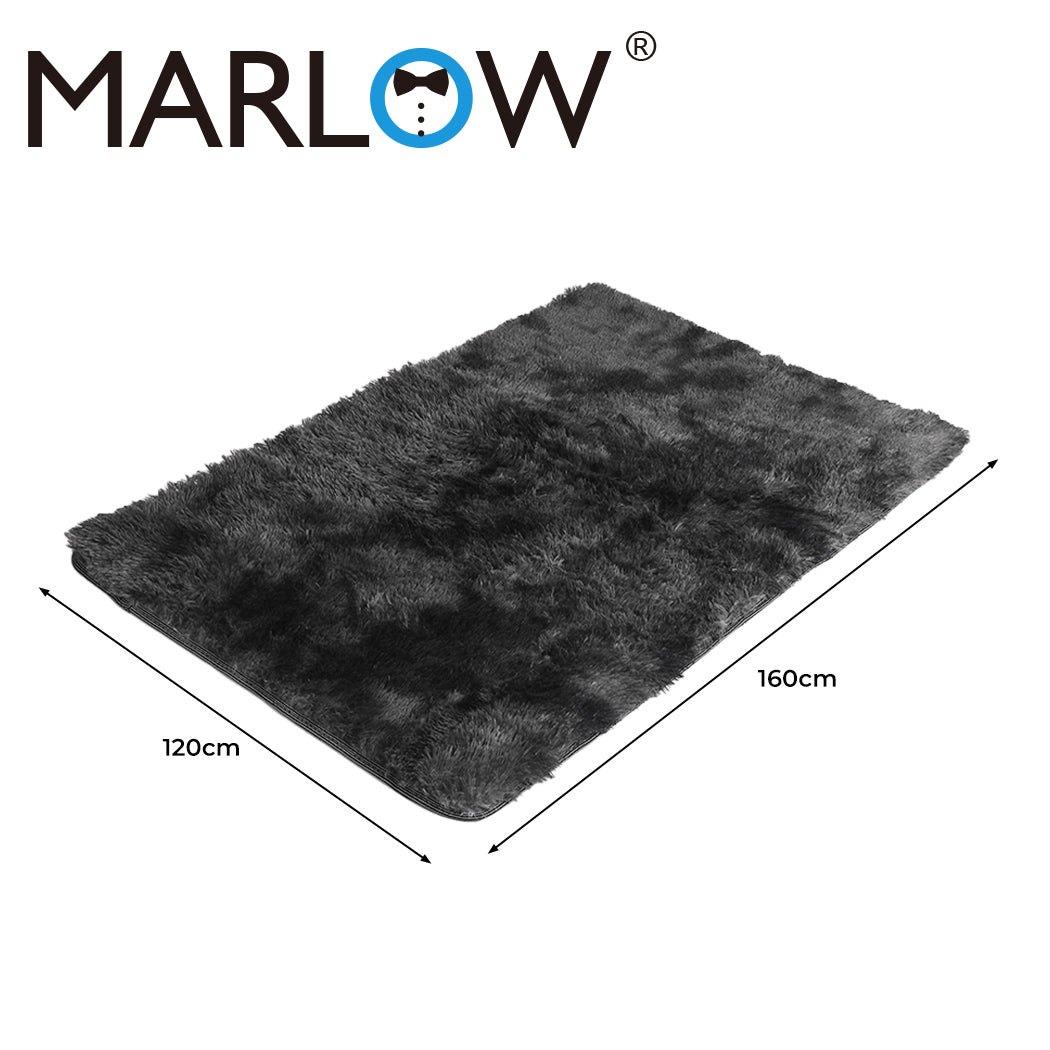 Marlow Floor Rug Shaggy Rugs Soft Large Carpet Area Tie-dyed 120x160cm Black