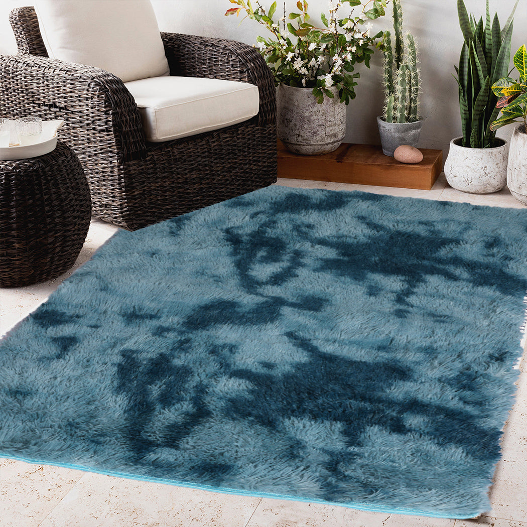Marlow Floor Rug Shaggy Rugs Soft Large Carpet Area Tie-dyed 120x160cm Blue