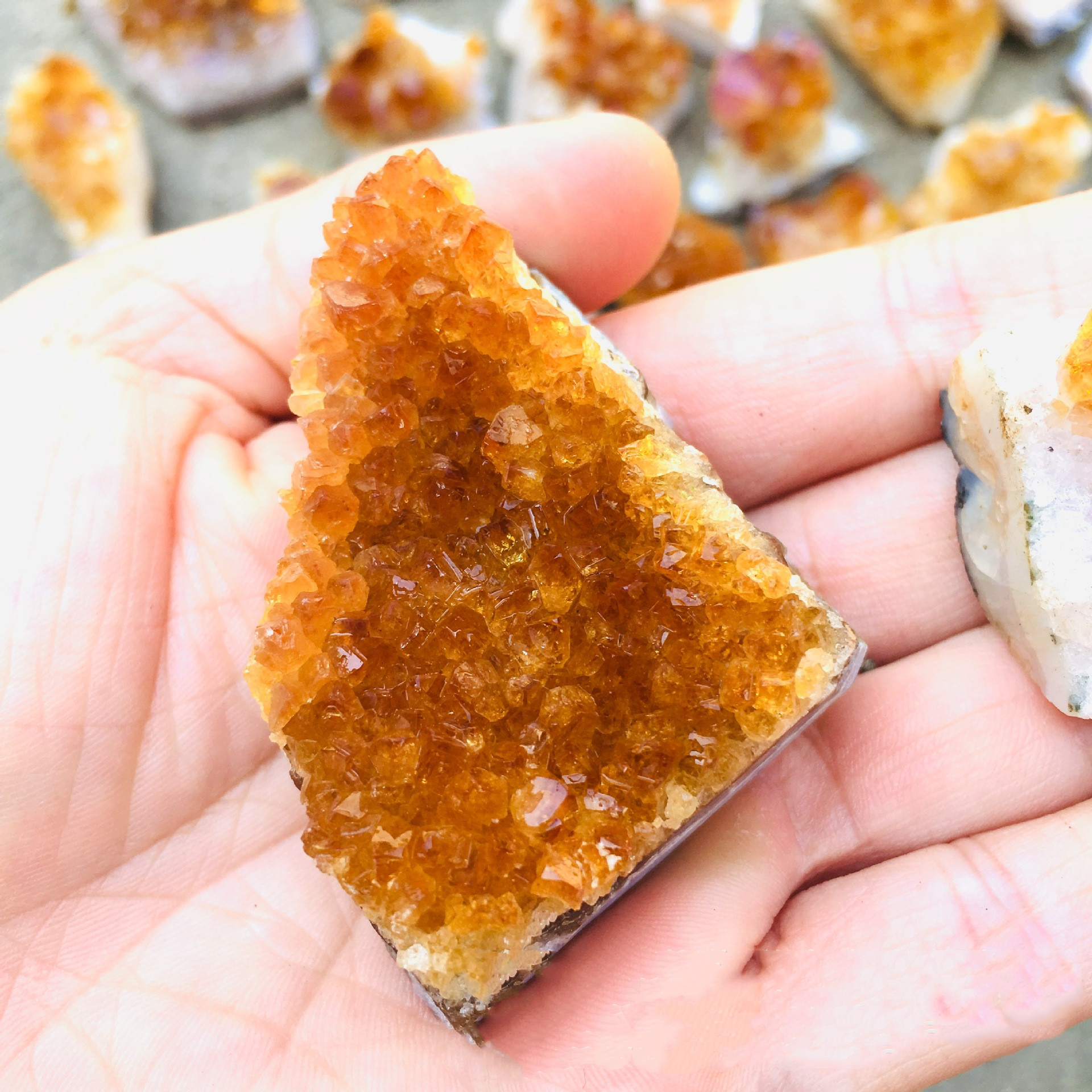 The citrine cave was formed hundreds of millions of years ago in the era of geological formation. Anhydrous silicic acid in the earth's crust flowed into the cave and crystallized by attaching to the cliff wall under a certain pressure and temperature. The "authentic" citrine contains color bands arranged equally or intersecting at an angle of 45ᄚ. The color is often caused by double crystals. The two positions of the color are symmetrical. "People" are seen on the citrine fracture The zigzag double crystal slit is an important symbol of natural citrine. It is a famous citrine cluster. Citrine is regarded as the top grade with its bright, clean, flawless, and deep yellow background, with its sparkling red brilliance, as described in "Museum Guide":