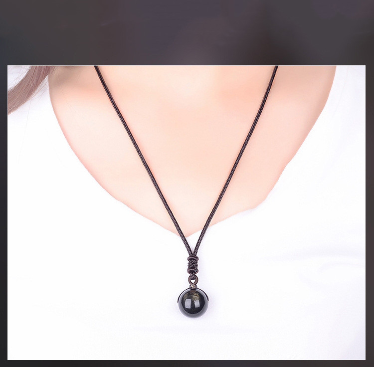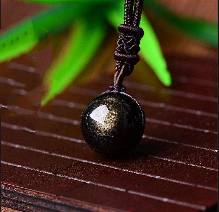 Natural Crystal Pendant Gold Obsidian Obsidian Fashion Simple Necklace
