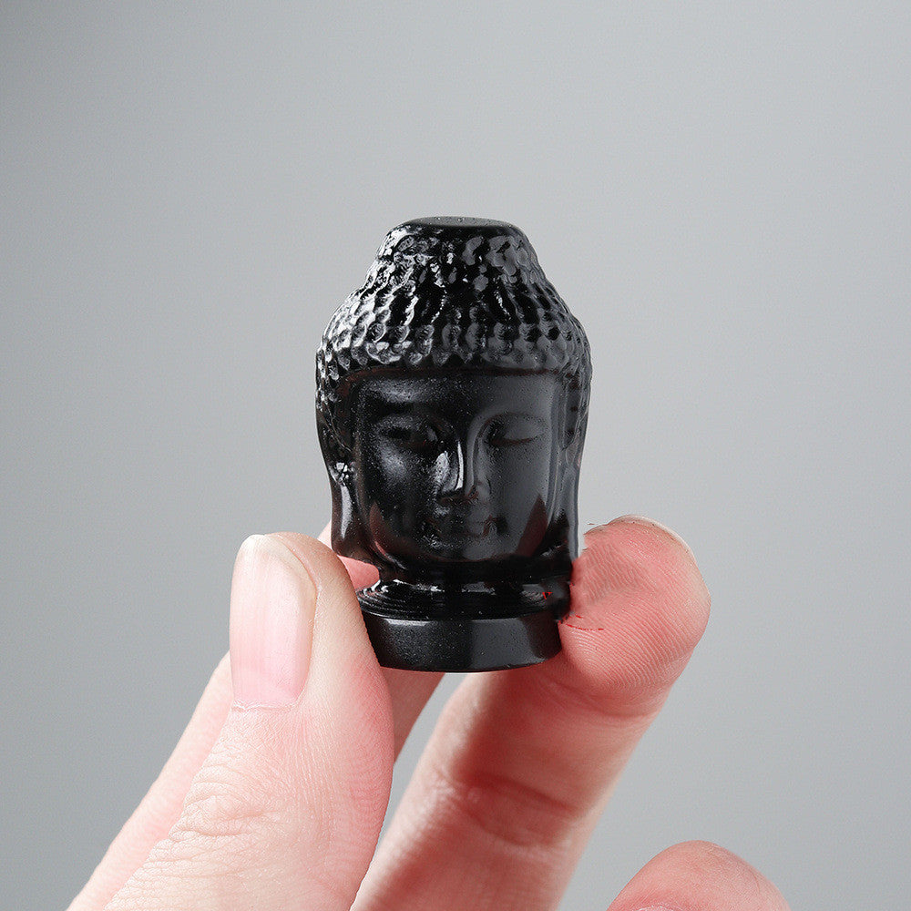 Obsidian Buddha Head Hand-carved Crystal Ornament