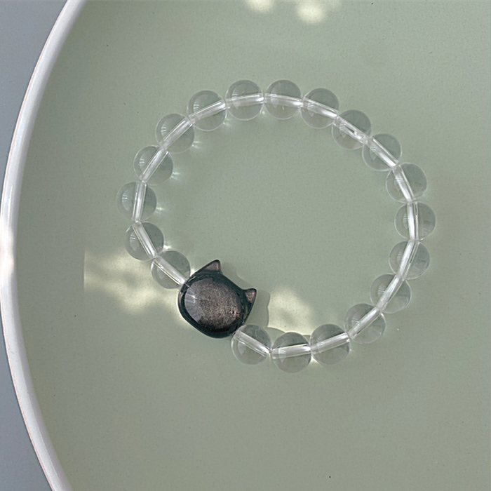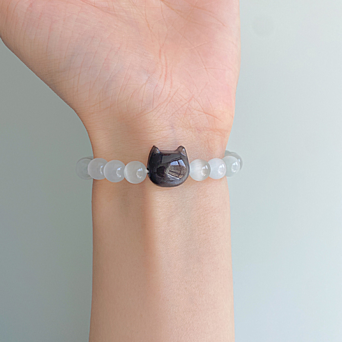 Silver Obsidian Cat White Crystal Sweet Cool
