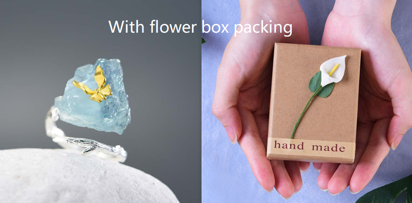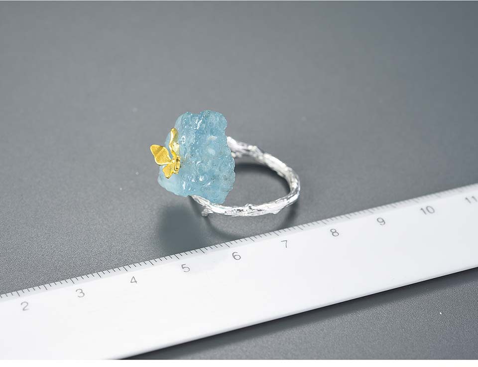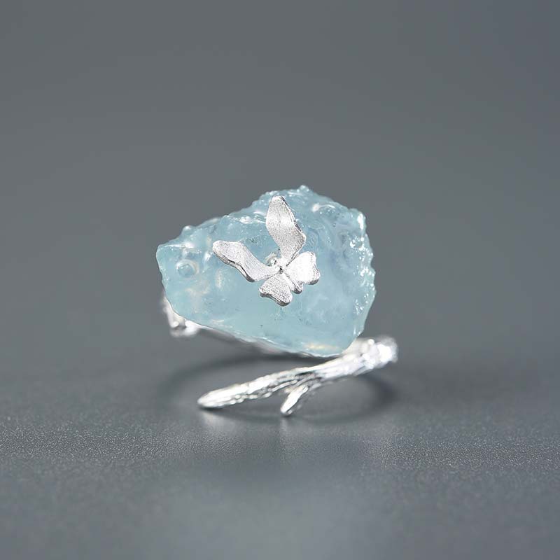 Women's Natural Aquamarine Adjustable Butterfly Ring